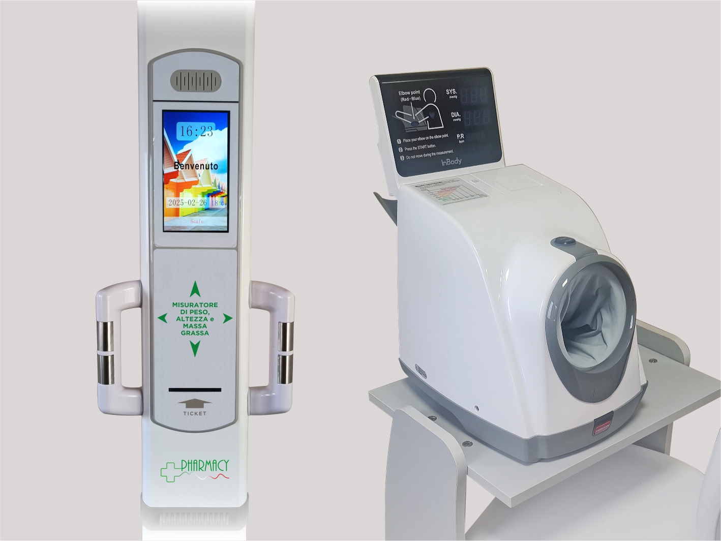 Strumenti professionali per misurazioni affidabili in farmacia: bilance di precisione, pesapersone e impedenziometri avanzati, più sfigmomanometro automatico per rilevazioni rapide e precise. Robusti e affidabili per un servizio impeccabile.
